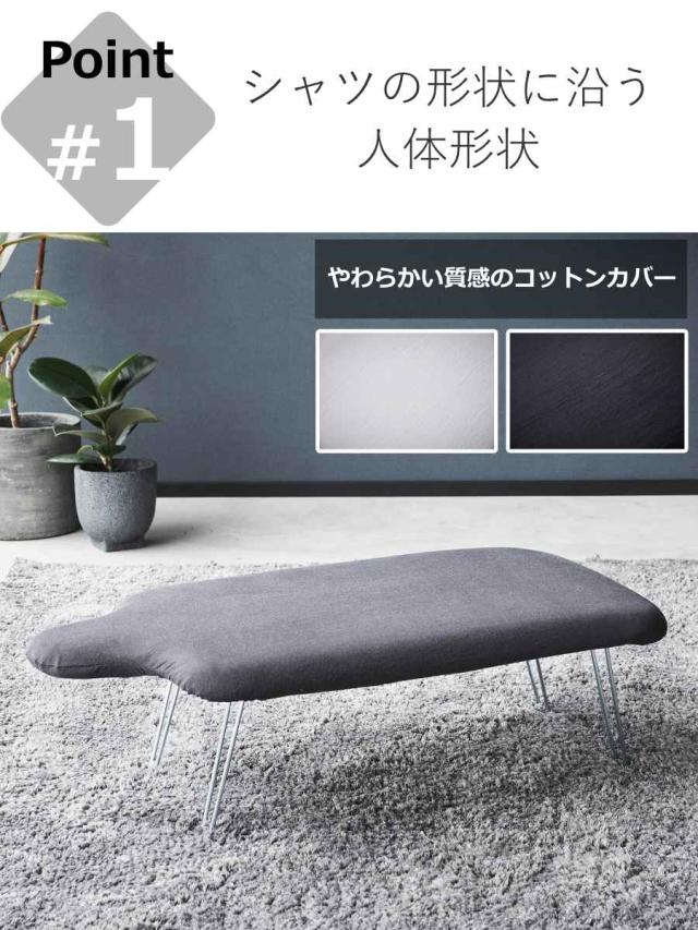 やわらかい質感と洗練された風合いのコットンカバーを使用した、人体型アイロン台です。服がアイロン台にぴったりフィットするので、シワを簡単に伸ばせます。