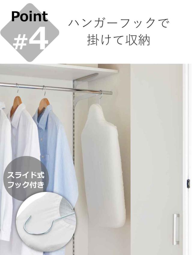 裏面にスライド式ハンガーフックが付いているので、使わない時はクローゼット内に引っ掛けて収納できます。