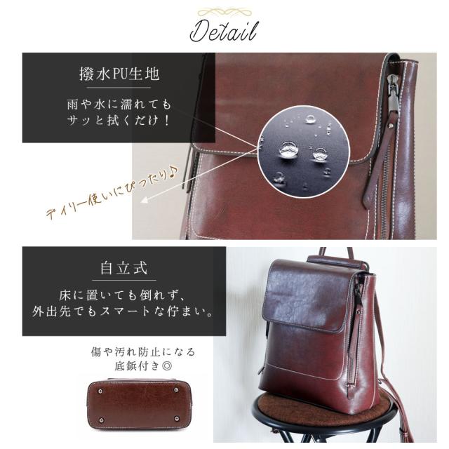 リュック レディース 軽量 通勤 きれいめ おしゃれ ショルダー ショルダーバッグ 斜めがけ 小さめ PU レザー 2way 撥水 ブランド 旅行 大容量 大人 軽い 通勤バッグ 黒 かわいい 韓国 可愛い かっこいい コンパクト 通学 合皮 ビジネス シンプル タウン ブラウン