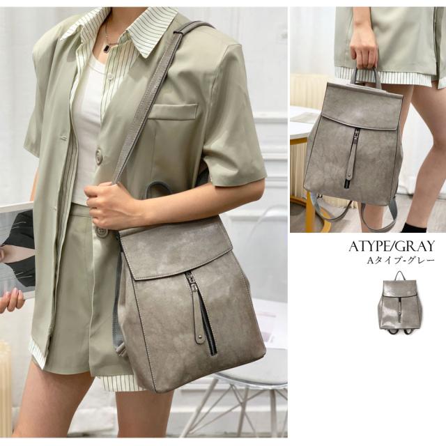 外側:前面ファスナーポケット×1/背面隠しファスナーポケット×1/マグネット付きフラップ&ファスナー式開口