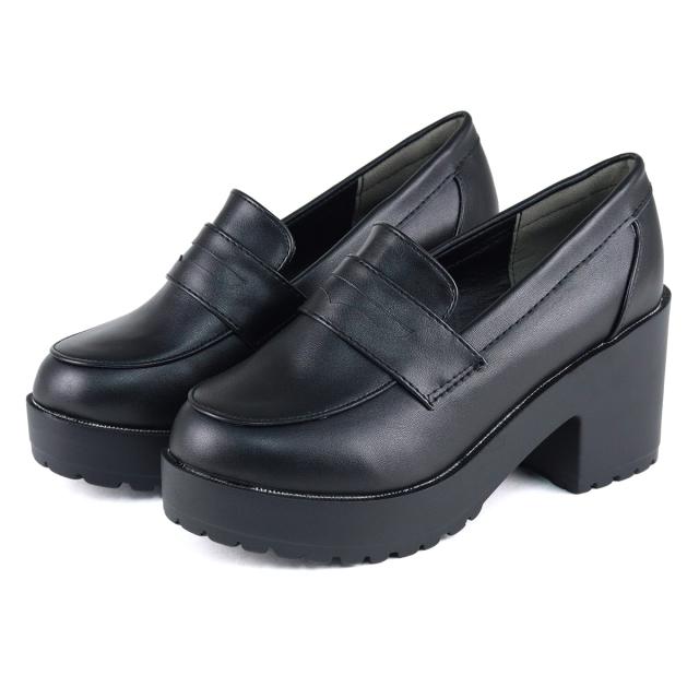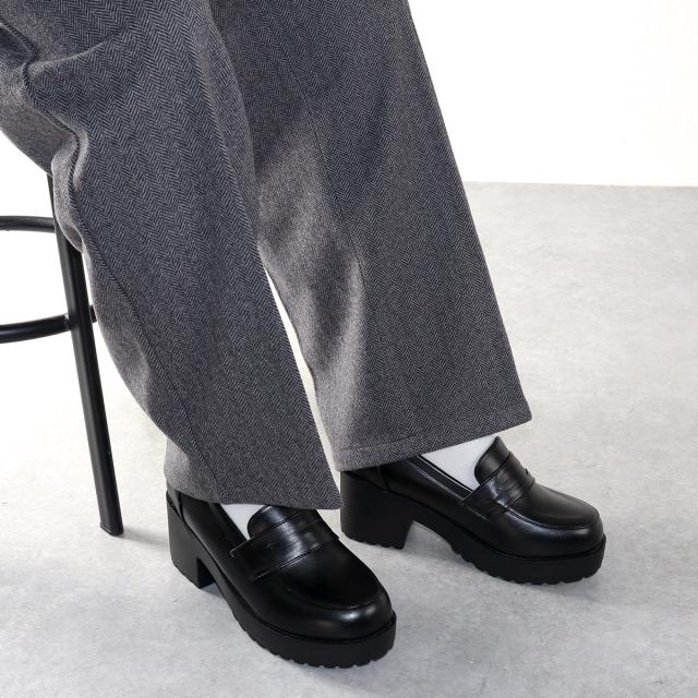 コインローファー 靴 メンズ 厚底 革靴 8cmヒール チャンキーヒール 軽量 歩きやすい 合皮 黒 No.3023M 25.5-27.5cm LiBERTYDOLL リバティードール