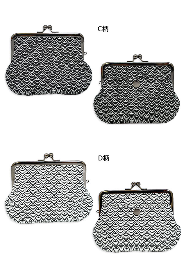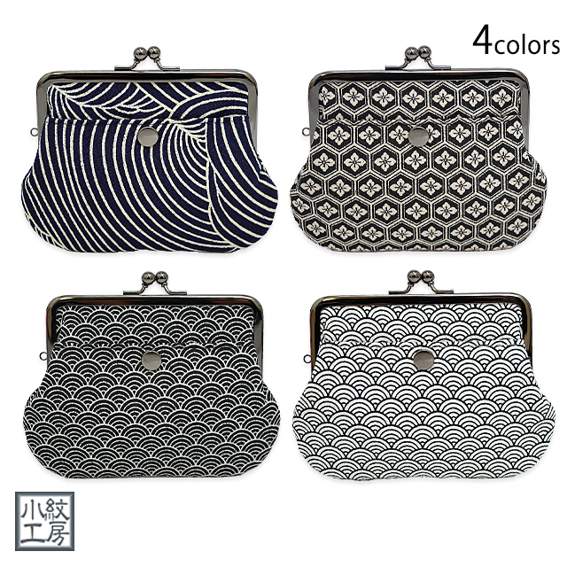 角型親子がま口財布 小紋工房 0223 和柄 和風 ちりめん 日本製 国産 青海波 家紋