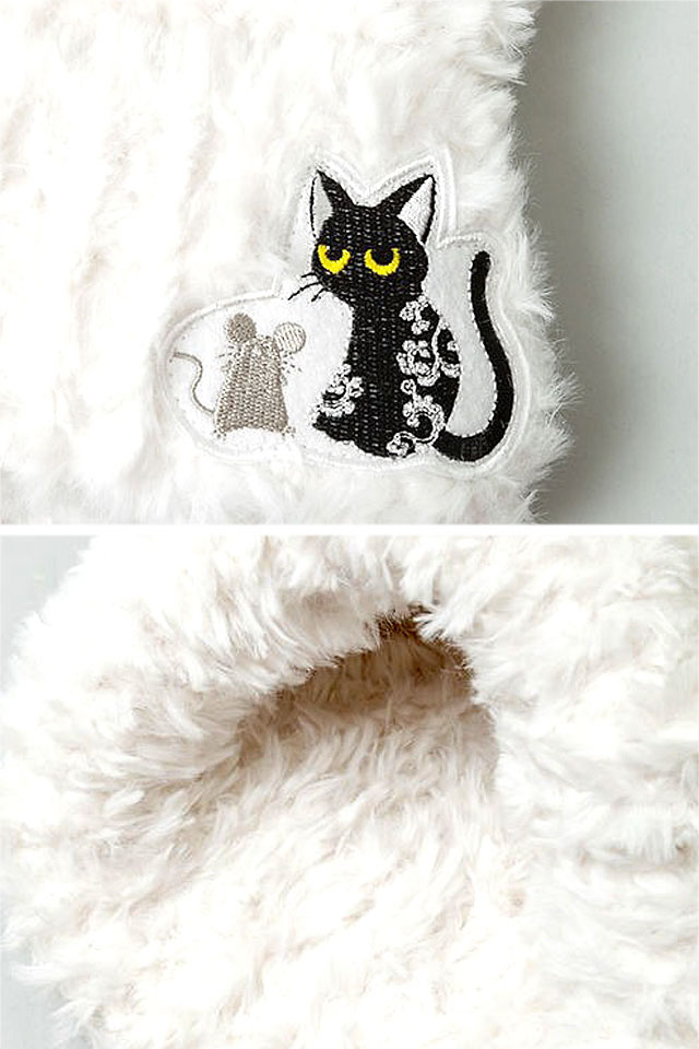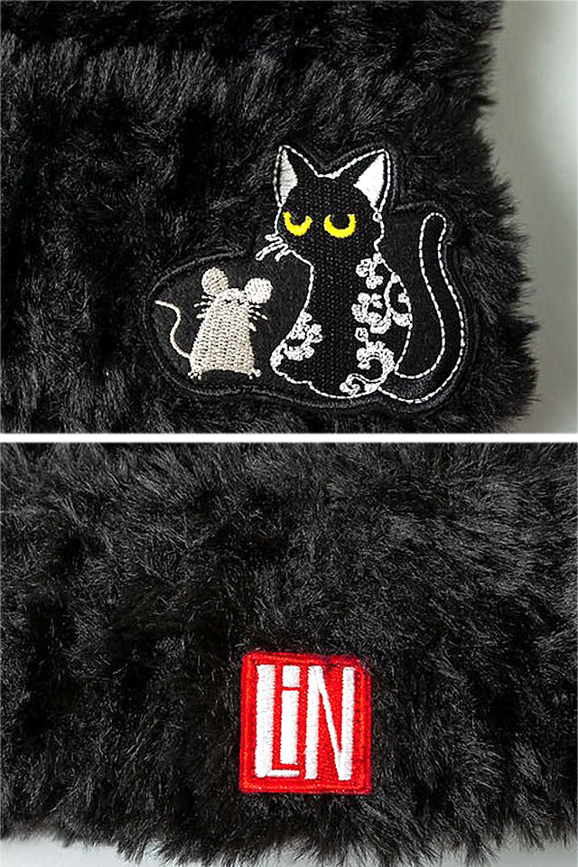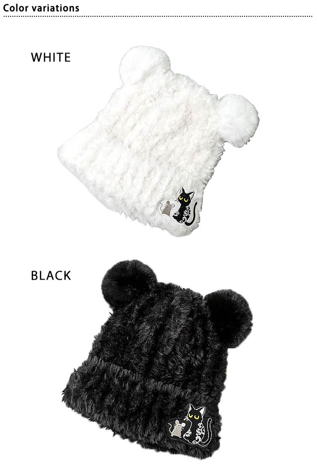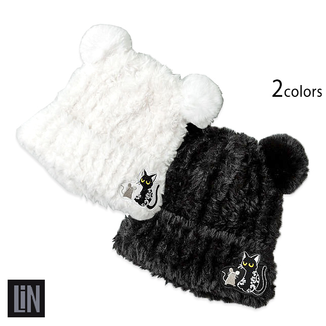ラミ&アール 耳付きモコモコ帽子 LIN AL-75736 黒猫 ネコ 鼠 ネズミ 防寒 ユニセックス