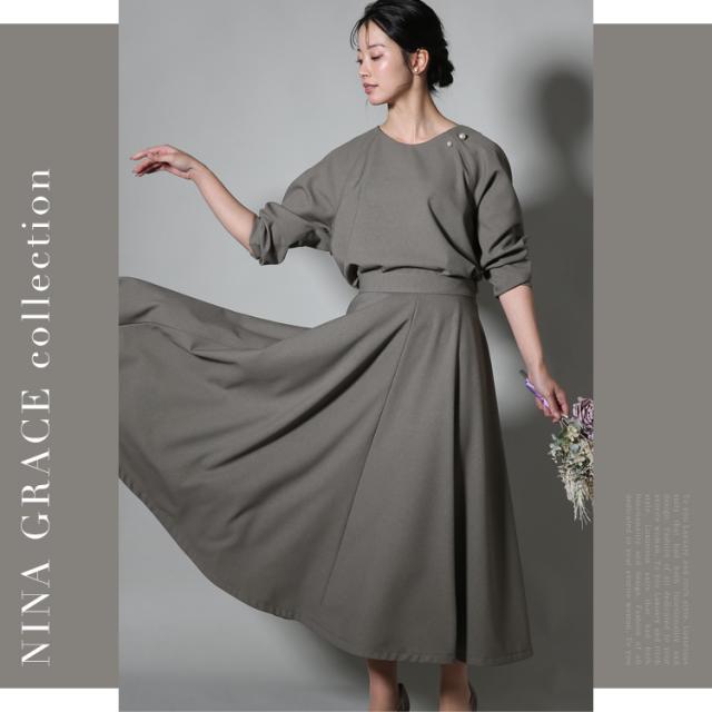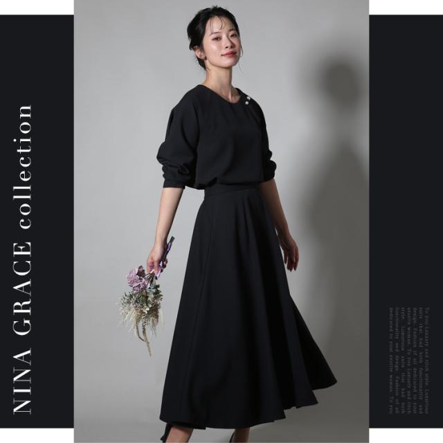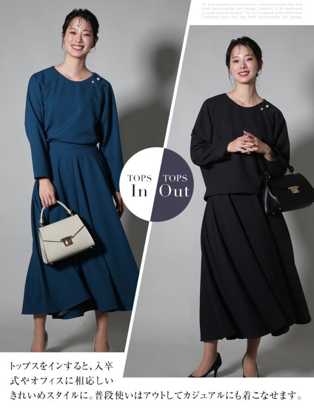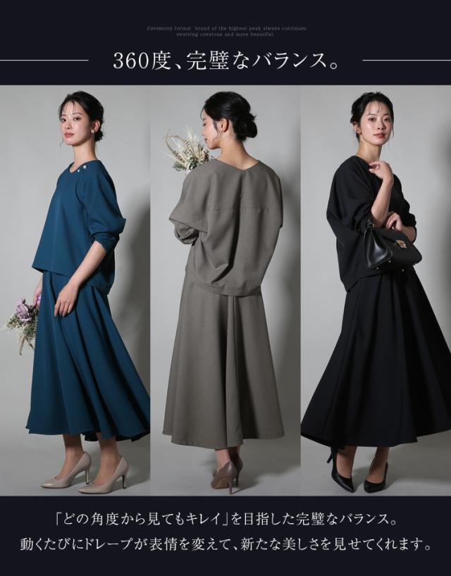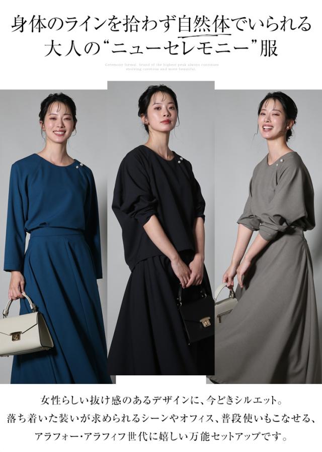 セレモニースーツ レディース おしゃれ 30代 40代 50代 ブラウス スカート フォーマルスーツ ママスーツ 母 母親 スーツ 七五三 お宮参り 入園式 入学式 卒園式 卒業式 結婚式 体型カバー 大きいサイズ セットアップ M L ブラック グレージュ ブルー NGR-3125 送料無料