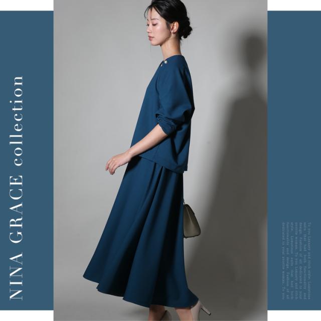 [セレモニースーツ レディース おしゃれ 30代 40代 50代 ブラウス スカート フォーマルスーツ ママスーツ 母 母親 スーツ 七五三 お宮参り 入園式 入学式 卒園式 卒業式 結婚式 体型カバー 大きいサイズ セットアップ M L ブラック グレージュ ブルー NGR-3125 送料無料]