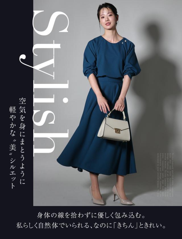 女性らしい抜け感のあるデザインに、今どきシルエット。落ち着いた装いが求められるシーンやオフィス、普段使いもこなせる、アラフォー・アラフィフ世代に嬉しい万能セットアップです。「どの角度から見てもキレイ」を目指した完璧なバランス。動くたびにドレープが表情を変えて、新たな美しさを見せてくれます。