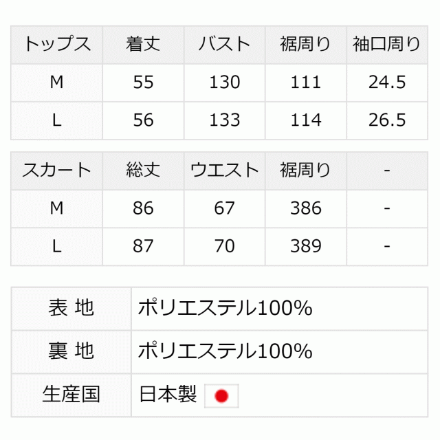 | 裏地 | トップス:× スカート:× |