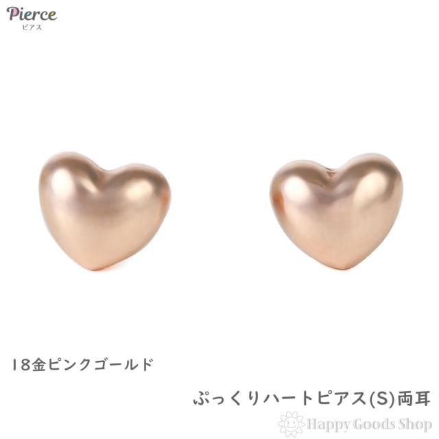 18金 ピアス ぷっくり ハート (S) ピンクゴールド レディース セカンドピアス 両耳 アクセサリー