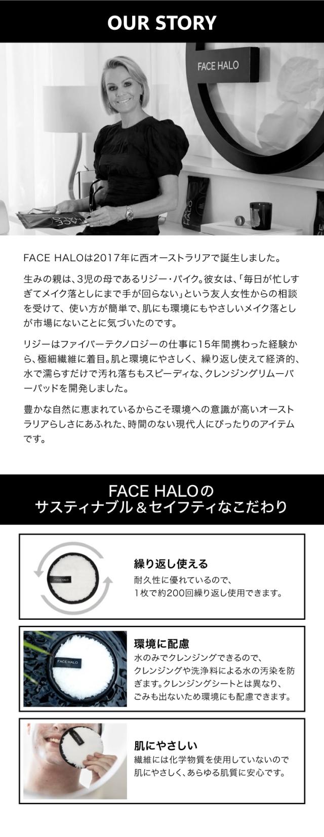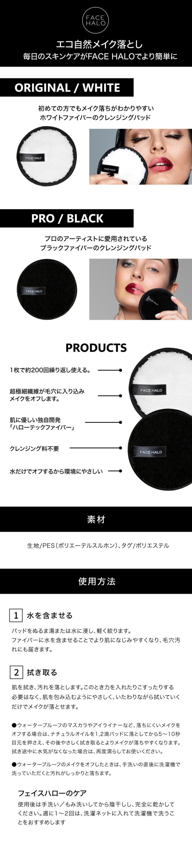 FACE HALO フェイスハロー クレンジングパッド 1枚入(WHITE / BLACK) 水だけ メイク落とし クレンジング 拭き取り クレンジング料不要 繰り返し使える スキンケア 毛穴 角質 汚れ ケア つるつる 肌に優しい 正規品