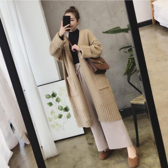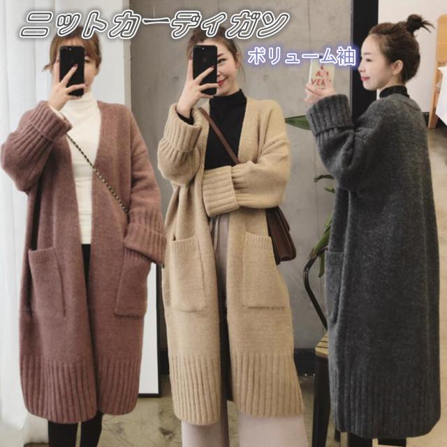 カーディガン レディース ニット アウター ロングカーディガン 秋冬 羽織り フェミニン ボリューム袖 柔らかい 体型カバー 切り替え ゆったり ポケット付き ジャケット コート 保温 暖か 前開き セーター ニットガウン 上質 きれいめ 防寒 あったか