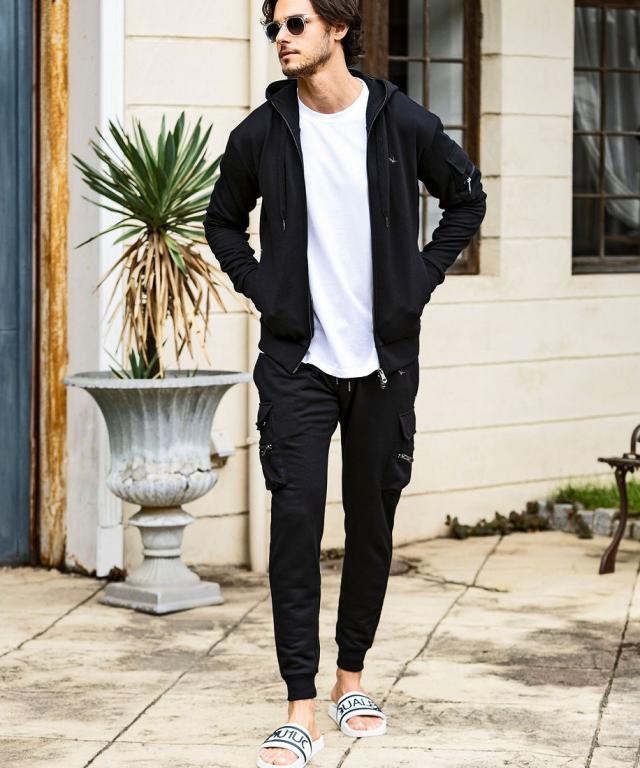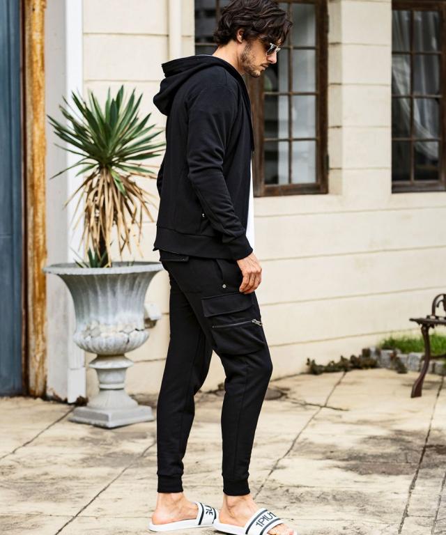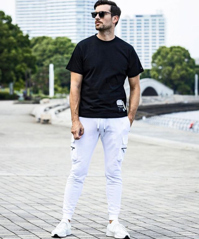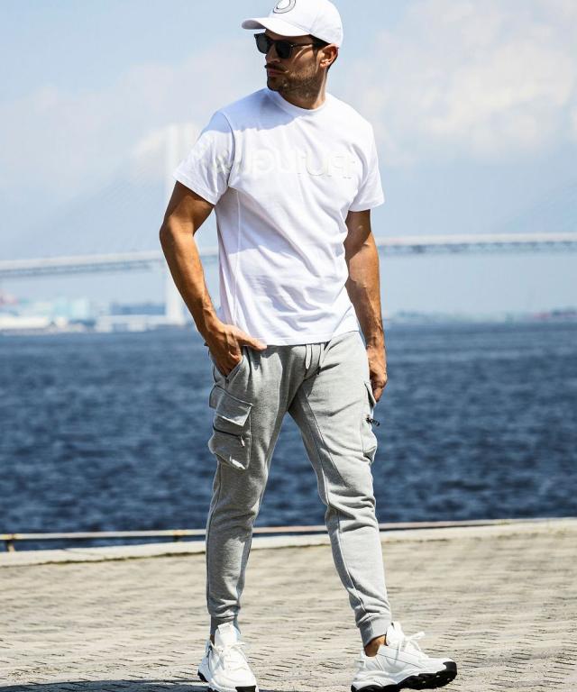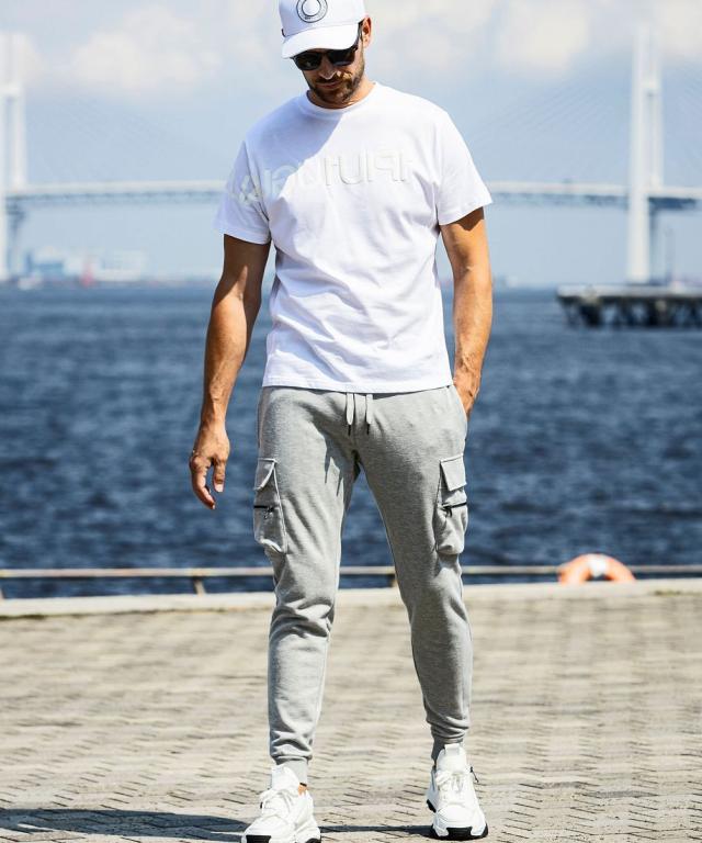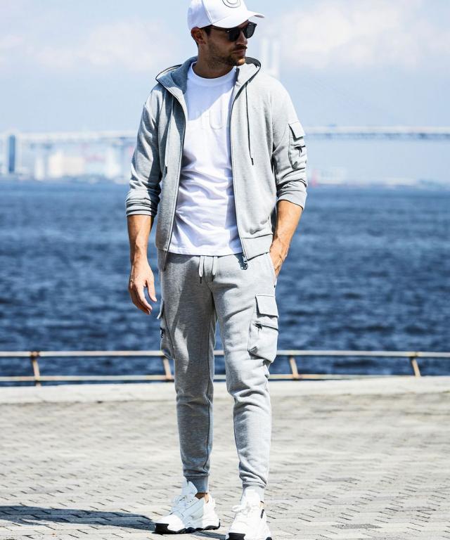 カーゴパンツの持つ男らしい無骨さと、スウェットならではのリラクシングな穿き心地を両立しています。