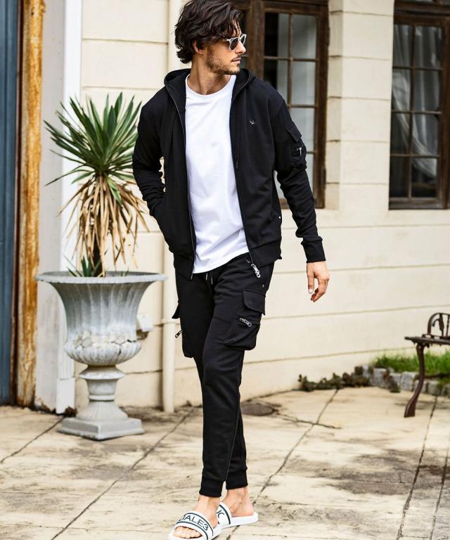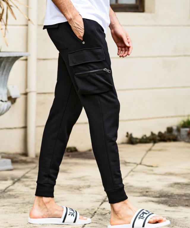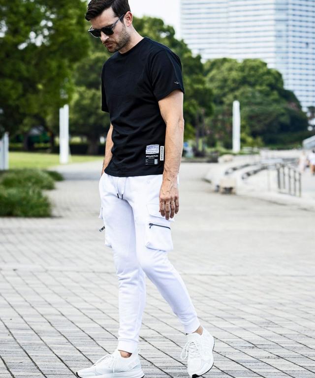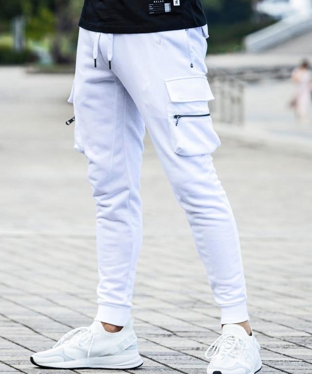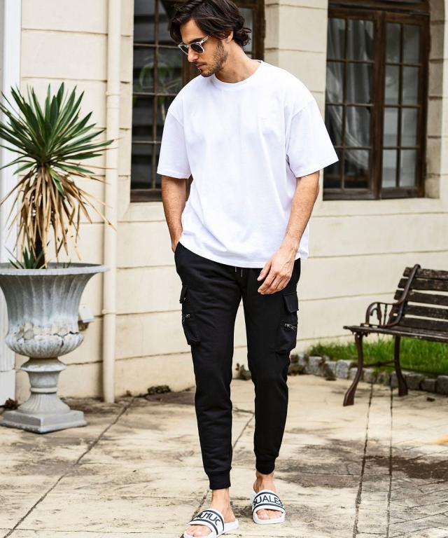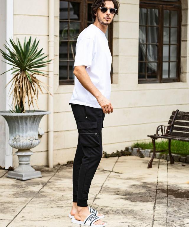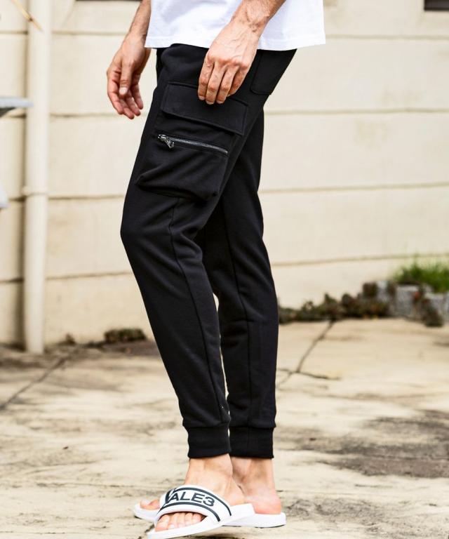 カーゴパンツの持つ男らしい無骨さと、スウェットならではのリラクシングな穿き心地を両立しています。