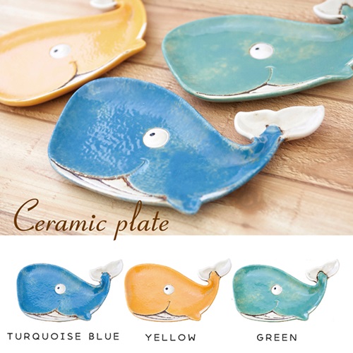 セラミック プレート クジラ 小物置き インテリア 玄関 くじら ホエール かわいい 手塗り 送料無料
