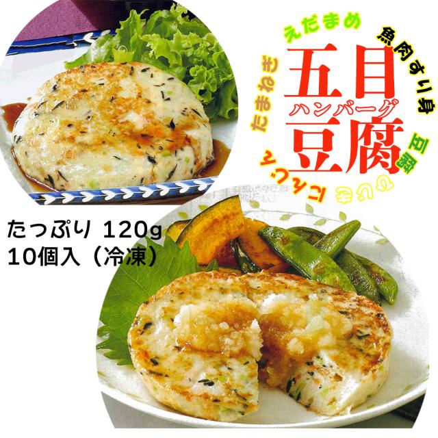 豆腐ハンバーグ 五目 豆腐 魚肉すり身 野菜(にんじん、たまねぎ、えだまめ) 120gx10個 冷凍 植物性たんぱく