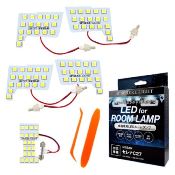 スフィアライト(Spherelight) LEDルームランプセット 日産 セレナ C27/HC27 2016年08月〜2022年11月 SLRM-05 内装 内装パーツ インテリア ルームランプ ルームライト ランプ ライト ROOMLAMP Room lamp LED 室内灯 リーディングランプ マッピングランプ 車内灯 ルームランプ球 ルーム球 省エネ 照明 取り換え 交換 交換キット キット 交換セット セット 加工 改造 アクセサリー カーアクセサリー カー用品 カスタマイズ カスタム パーツ ドレスアップ 車種専用 快適 低価格 高品質 取付簡単