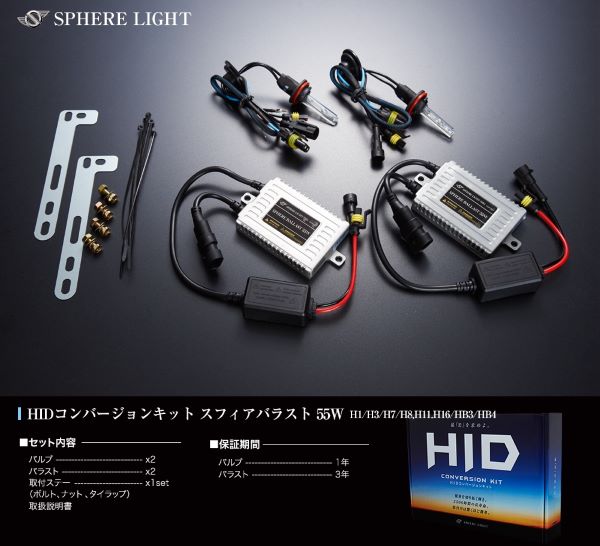 スフィアライト(Spherelight) HIDコンバージョンキット 3000K 55W H7 12V/24V兼用 SHDAD0301 外装 外装パーツ エクステリア HID ヘッドライト ヘッドランプ ライト ランプ 照明 取り換え 交換 交換キット キット 交換セット セット 加工 改造 アクセサリー カーアクセサリー カー用品 カスタマイズ カスタム パーツ ドレスアップ 12ボルト 24ボルト 疲労軽減 早期危機 未然回避 バラスト 電力効率 バッテリー 長寿命 コンパクト 小型 カプラーオン 快適 HIDバルブ バルブ ステー イエロー ゴールデンイエロー ゴールデン yellow golden 黄 キ 黄色 キイロ 金 キン 金色 キンイロ