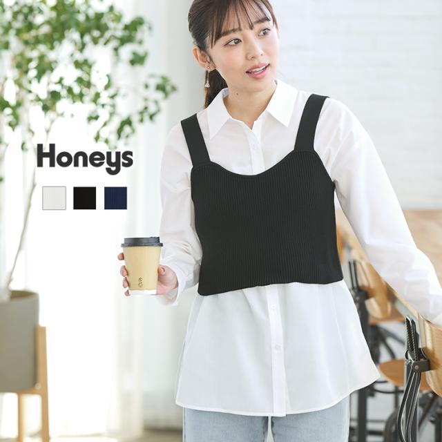 ビスチェ キャミソール シャツ セット ニット シアーシャツ 長袖 重ね着 おしゃれ SALE Honeys ハニーズ シャツ付ビスチェ
