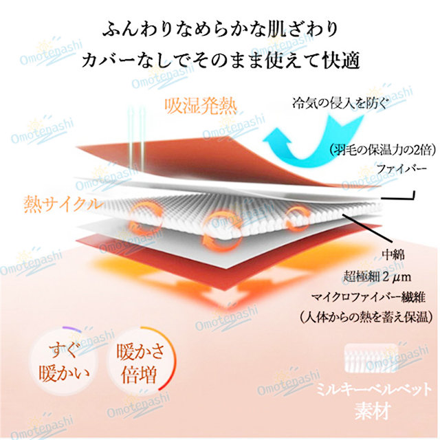 - ふわふわ軽くてあったかいです。 肌触りが気持ちが良いので、そのままカバー無しで使っています