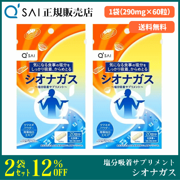 キューサイ シオナガス 290mg×60粒 2袋まとめ買い 塩分吸着サプリ 減塩対策をサポート 海藻由来成分配合 国産玉ねぎパウダー配合