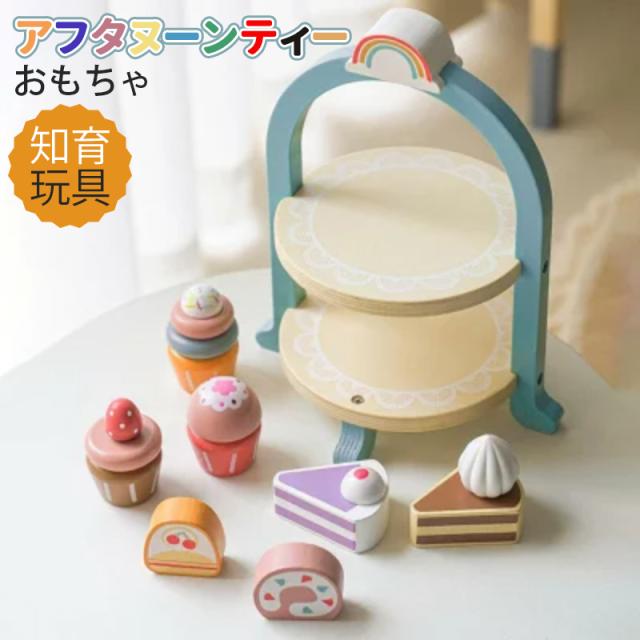 アフタヌーンティー 木のおもちゃ 木製 おままごと カップケーキ ショートケーキ バームクーヘン いちご 苺 ストロベリー ままごと 子供のおもちゃ 木製
