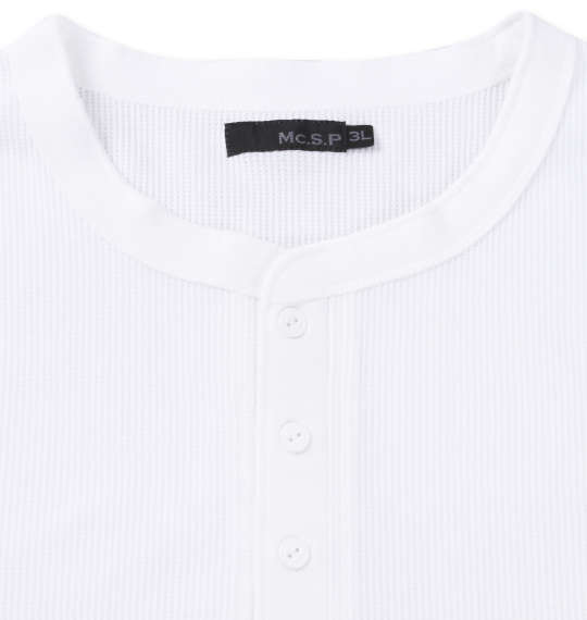 大きいサイズ メンズ Mc.S.P ワッフル ヘンリーネック 長袖 Tシャツ ホワイト 1278-4111-1 3L 4L 5L 6L 7L 8L
