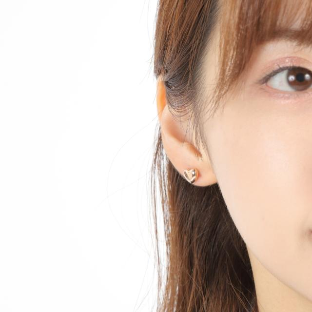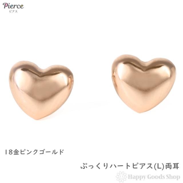 18金 ピアス ぷっくり ハート (L) ピンクゴールド レディース セカンドピアス 両耳 アクセサリー