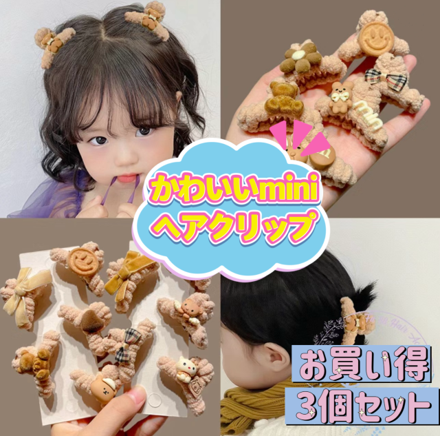 お買い得【3点セット】韓国風バンスクリップ ヘアクリップ ヘアキャッチ レディース しっかりまとまる おしゃれ 可愛い キャラクター もふもふ ヘアアクセサリー 髪飾り 髪留め クリップ ふわふわ 挟む 日常/オフィス/パーティー/デート用 女性 プレゼント