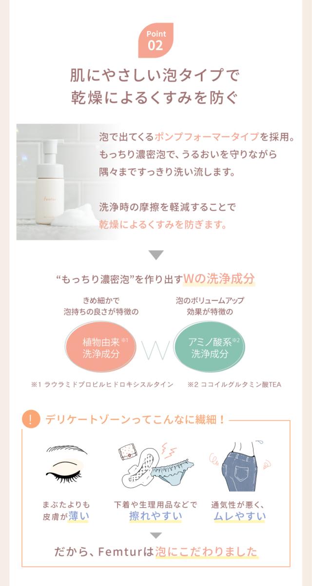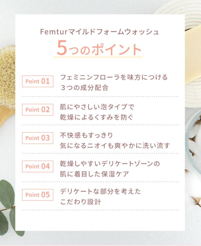 Femtur フェムチャー マイルドフォームウォッシュ デリケートゾーン 洗浄料 泡 タイプ 石鹸 市販薬 かゆみ 黒ずみ 保湿 匂い