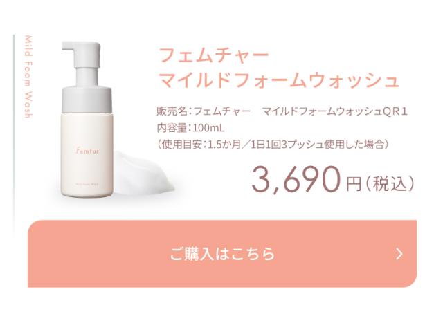 フェムチャー マイルドフォームウォッシュは、デリケートゾーン用ウォッシュ (洗浄料)です。