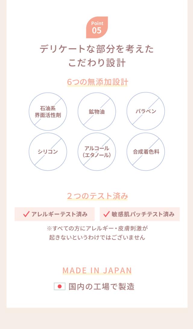 さらに、デリケートゾーンのpH値に合わせた弱酸性設計にすることで、デリケートゾーンの適切な肌状態を目指します。