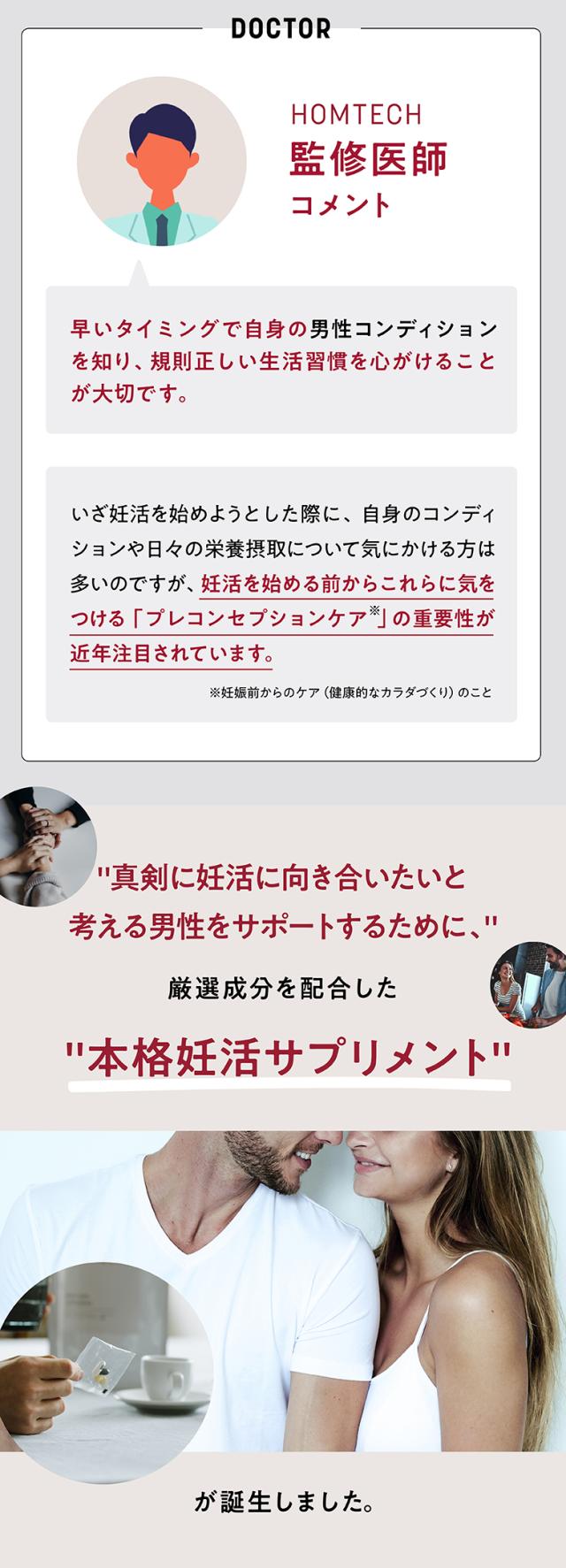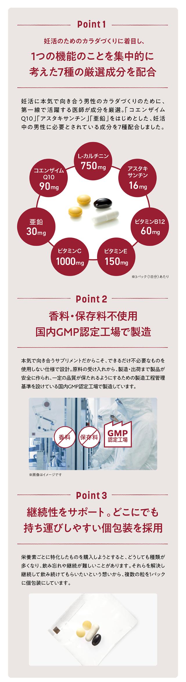 妊活に本気で向き合う男性のカラダづくりのために、第一線で活躍する医師が成分を厳選。