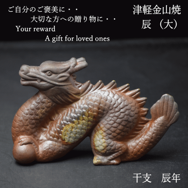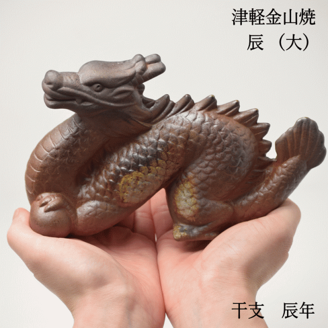 辰(大) 辰年 たつ年 (w6cm-h12cm-d19cm 286g) 干支 えと 置物 置き物 干支 2024年干支津軽金山焼 焼き締め 和モダン 映え おしゃれ 日本 陶器 父の日