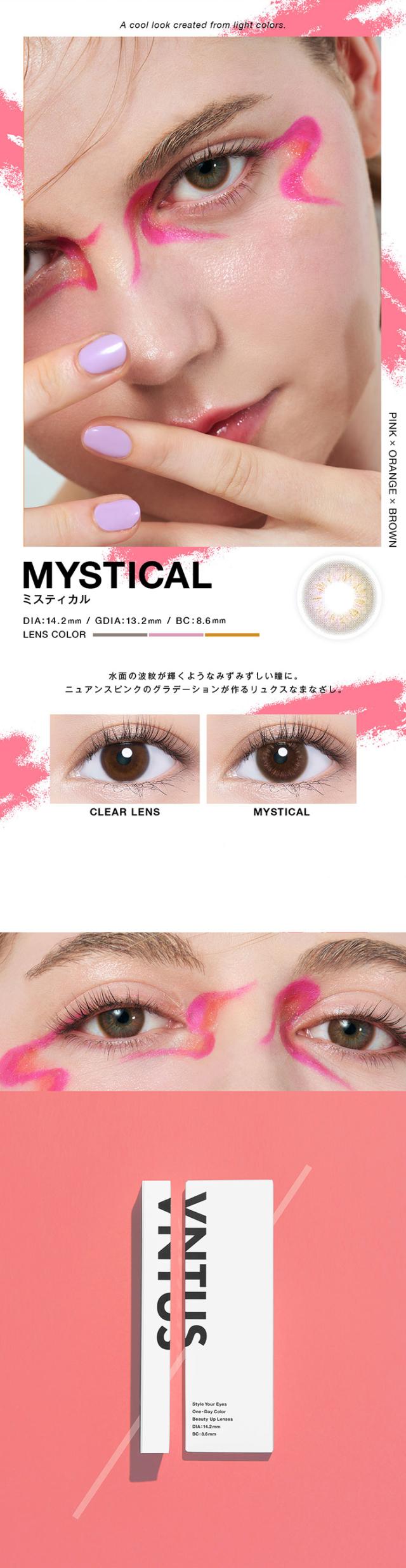| 着色直径 | 13.0mm:ブルーキスト /ナイトヴェール 13.2mm:リアリー /モーメント /ミスティカル /エモーション /アンミックス /アンニュイ 13.4mm:ブラウンキスト |