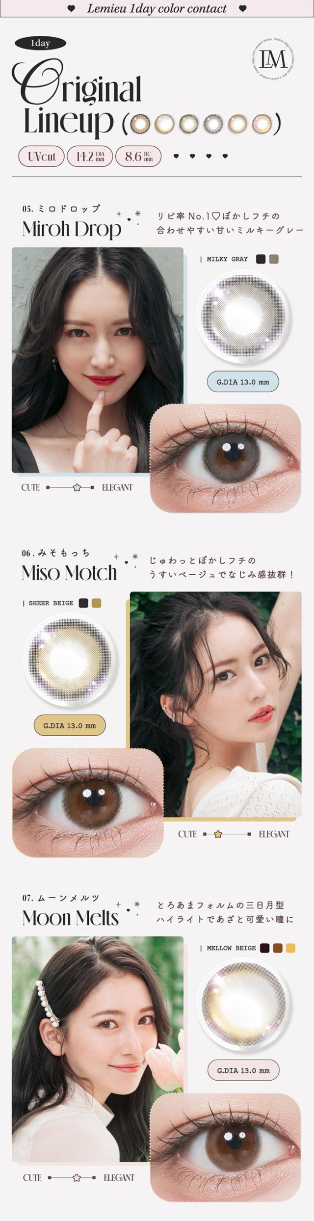 | 着色直径 | 13.0mm:みそもっち/ミロドロップ/ムーンメルツ 13.2mm:ミスティアイス/クリアジェルグロウ/シルエットミラー/フォンデュリング/リアルブラウニー/くるみぽっち/グラスローズ |