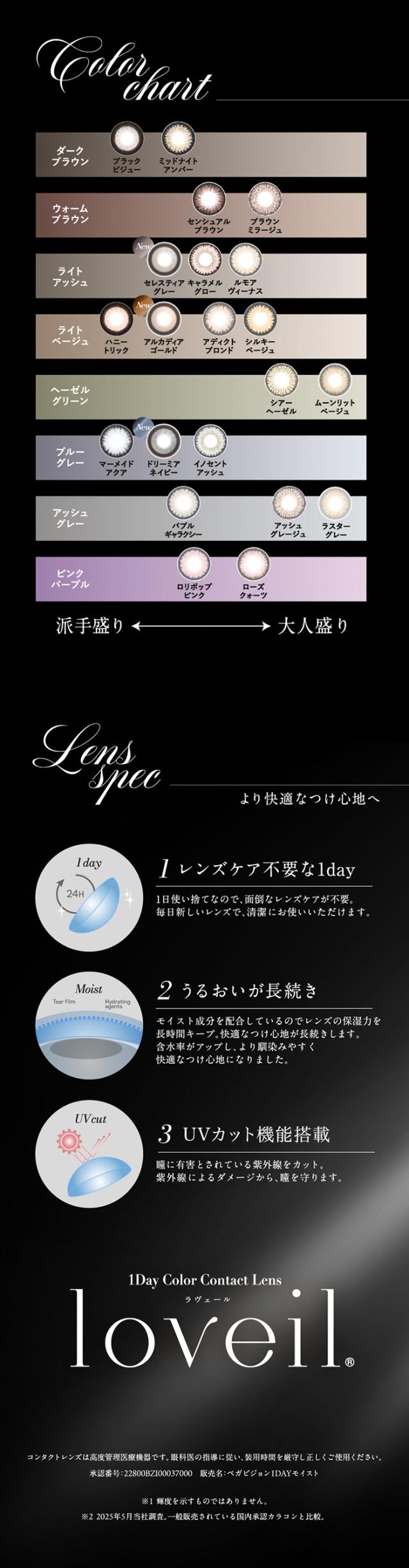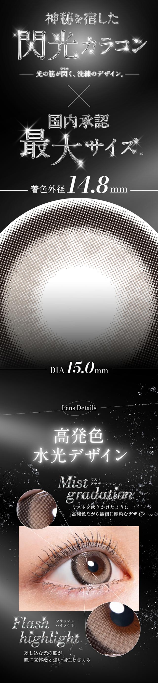 | DIA | 14.2mm:シアーヘーゼル/ブラウンミラージュ/アッシュグレージュ/ミッドナイトアンバー/シルキーベージュ/センシュアルブラウン/ムーンリットベージュ/ラスターグレー 14.4mm:ロリポップピンク/マーメイドアクア/アディクトブロンド/ジャスミンアイビー/ローズクォーツ/バブルギャラクシー/ルモアヴィーナス 14.5mm:キャラメルグロー/イノセントアッシュ/バイオレットグレア 15.0mm:セレスティアグレー/アルカディアゴールド/ドリーミアネイビー/ブラックビジュー/ハニートリック |