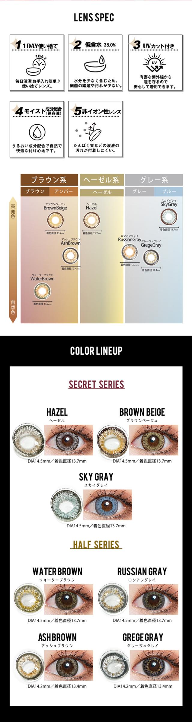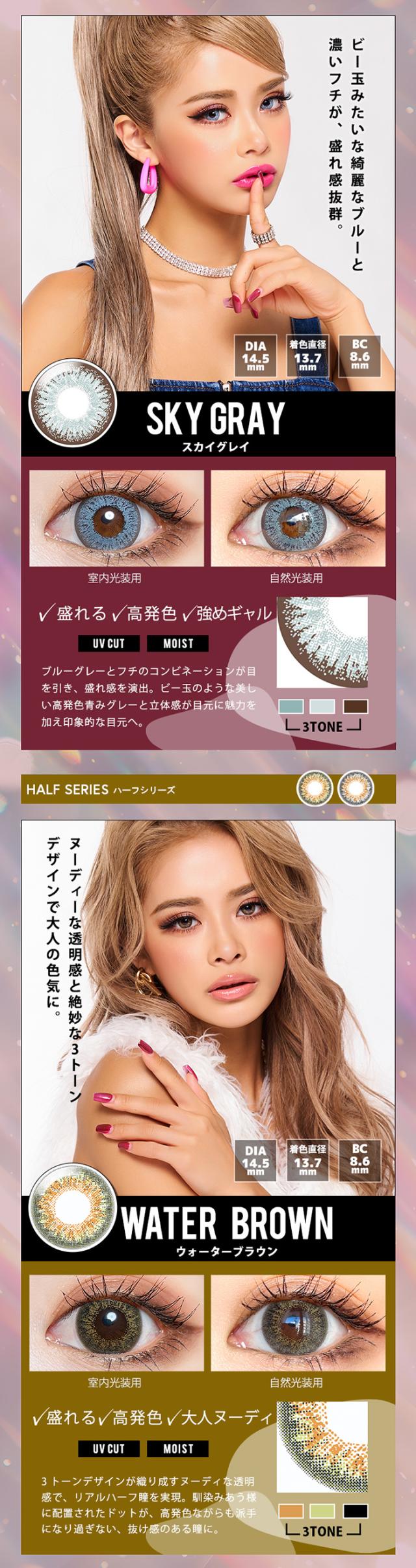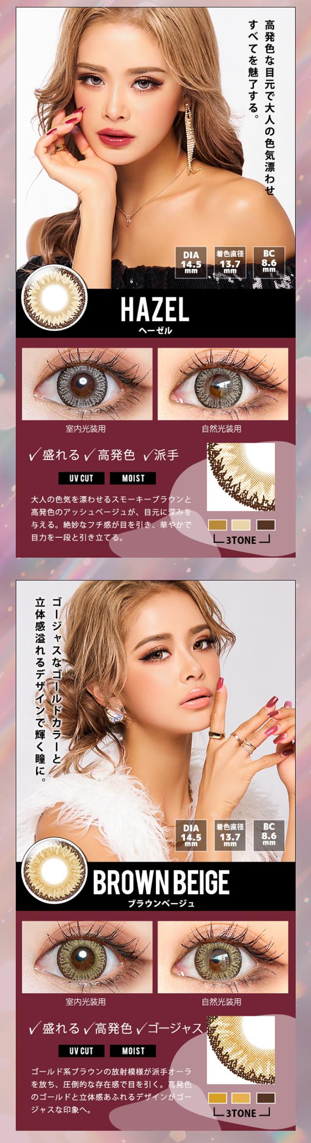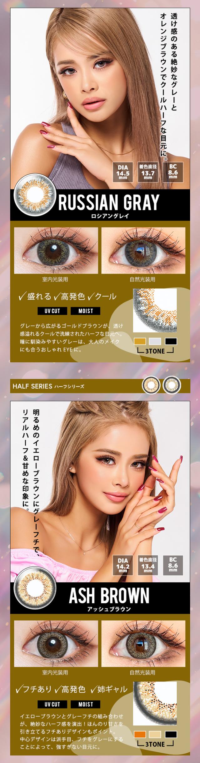 | 着色直径 | 13.4mm:アッシュブラウン/グレージュグレイ 13.7mm:ウォーターブラウン/スカイグレイ/ブラウンベージュ/ヘーゼル/ロシアングレイ |