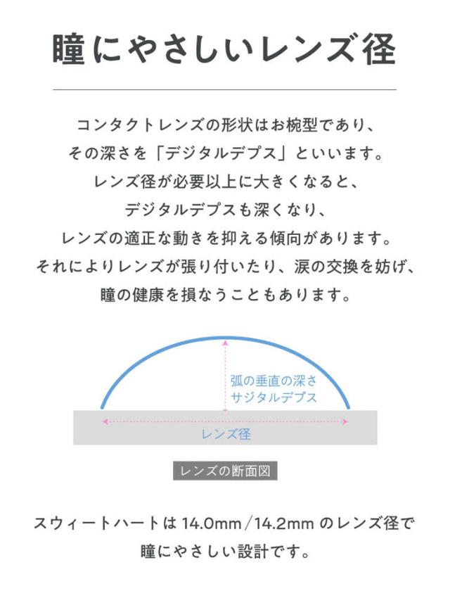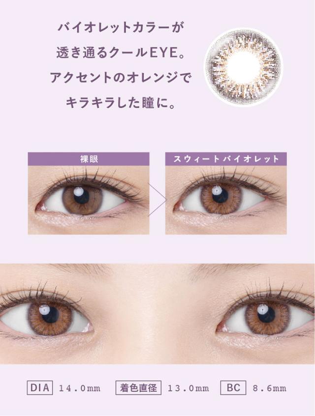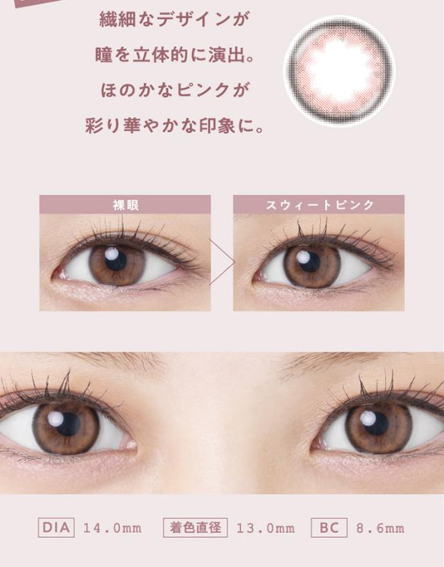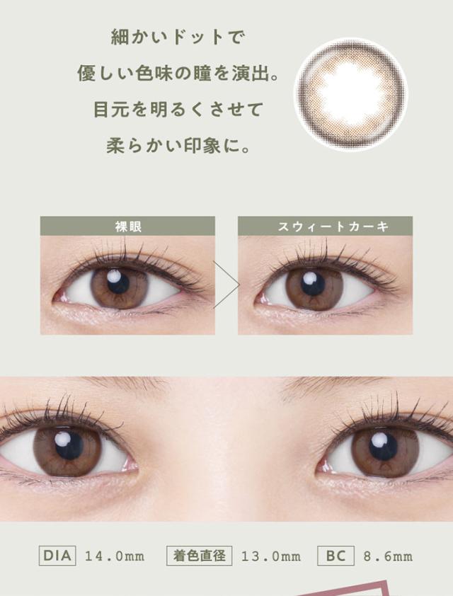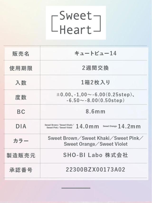 | 着色直径 | 13.0mm:スウィートバイオレット/スウィートブラウン/スウィートカーキ/スウィートピンク 13.4mm:スウィートオレンジ |