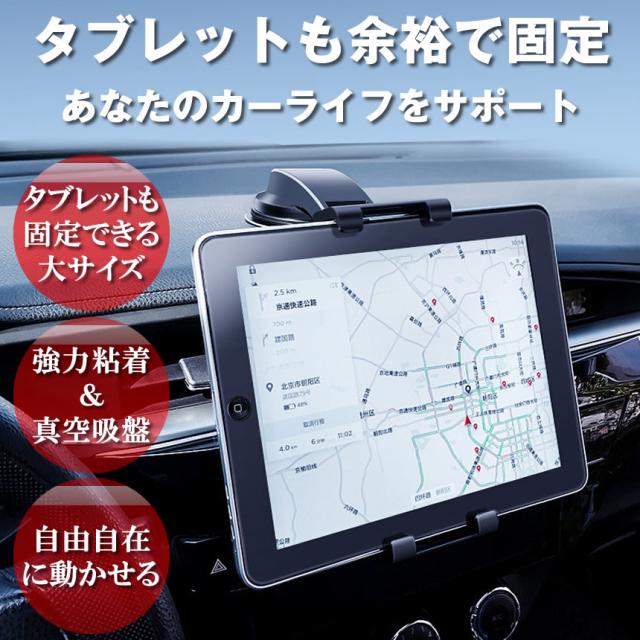 スマホ&タブレット兼用車載ホルダーは、車のダッシュボードやフロントガラスに