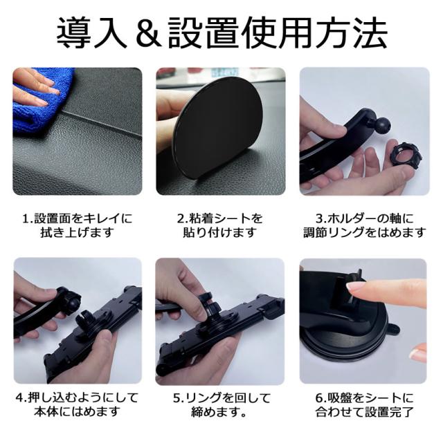 安定性抜群の超強力粘着ゲル&真空吸盤でダッシュボードまたはフロントガラスに