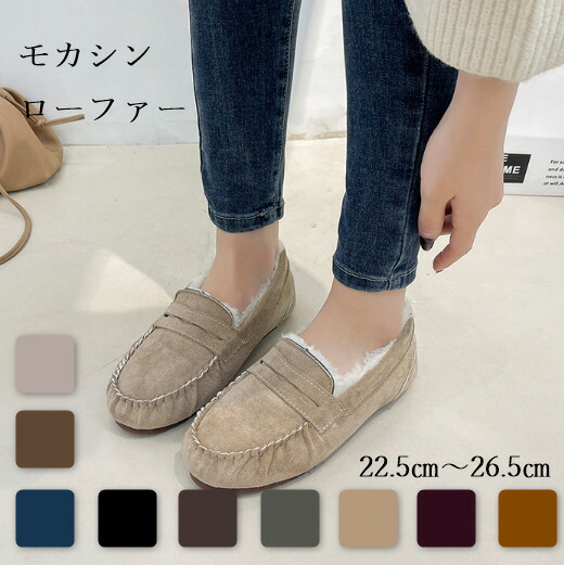 モカシン パンプス フラットシューズ 平底靴 裏起毛 ローファー 秋冬 ボア レディース カジュアル もこもこ かわいい