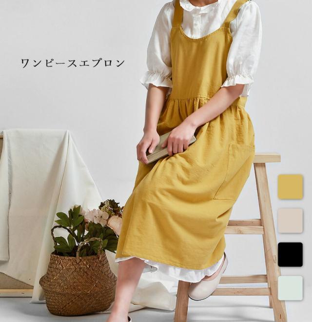 エプロン おしゃれ ワンピース かわいい チュニック レディース 保育士 ふんわり シンプル 無地 綿100%