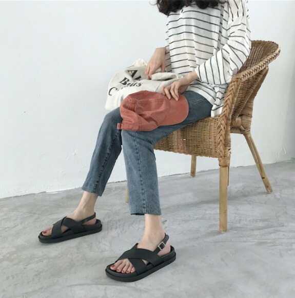 クロスライン サンダル ナースサンダル オフィスサンダル ナースシューズ クロスサンダル レディース シンプル ブラック