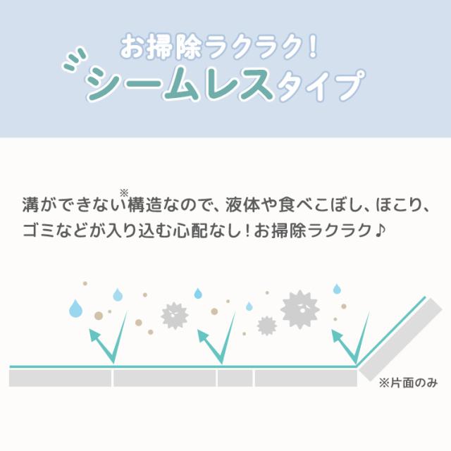 溝ができない構造で、食べこぼし等の液体やほこり、ゴミが入り込む心配なし!