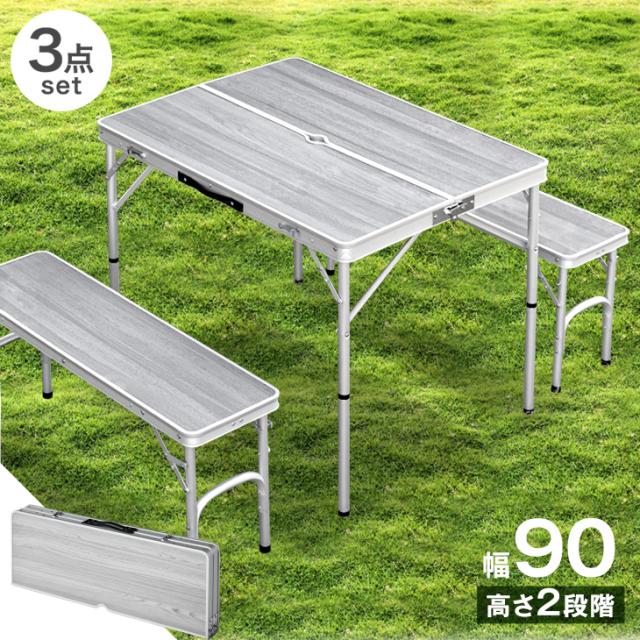 アウトドアテーブル 折り畳みテーブル 高さ調節 軽量 幅90 ベンチ 2脚 セット折りたたみ 折り畳み レジャーテーブルセット 折り畳みテーブル アウトドア 海 ピクニック 運動会 公園 庭