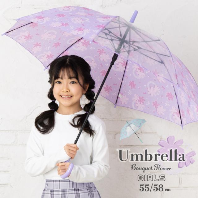 傘 雨傘 長傘 子供 キッズ 花柄 女の子 可愛い かわいい おしゃれ アンサンブル リンクコーデ おそろい お揃い グラスファイバー骨 通園 通学 入園 入学 送料無料 10002742