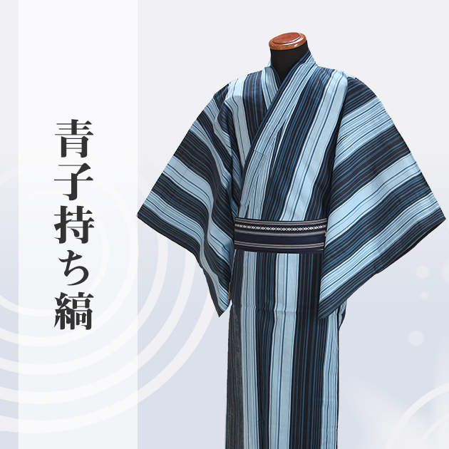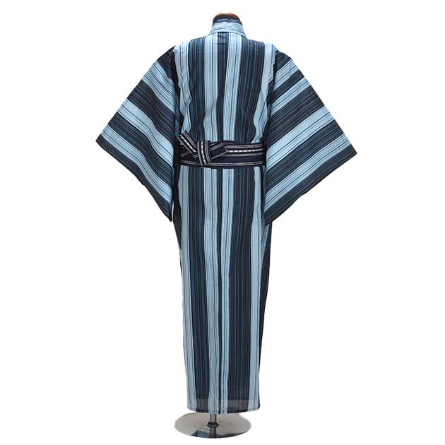 浴衣 男性 レンタル NT-my210 浴衣3点セット☆浴衣・帯・下駄☆青色/子持ち縞 送料無料