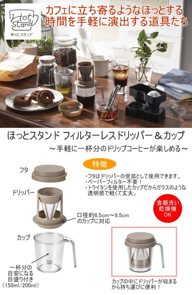 ほっとスタンド フィルターレスドリッパー&カップ HS-602 日本製 ドリッパー フィルターレス エコ コーヒー コーヒードリッパー セット カップ付き アウトドア 手軽 便利グッズ