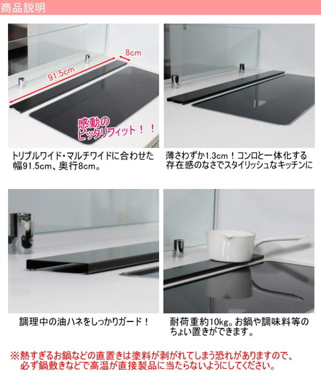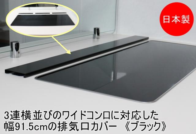 ステンレス排気口カバー兼コンロ奥ラック 幅91.5cm ブラック WF-26 【2024年度 発明奨励賞受賞】 日本製 ステンレス コンロ コンロカバー 薄型 鍋置き 汚れ防止 作業台 調理台 油はね ガード 排気口カバー トリプルワイド キッチン 燕三条製 ブラック