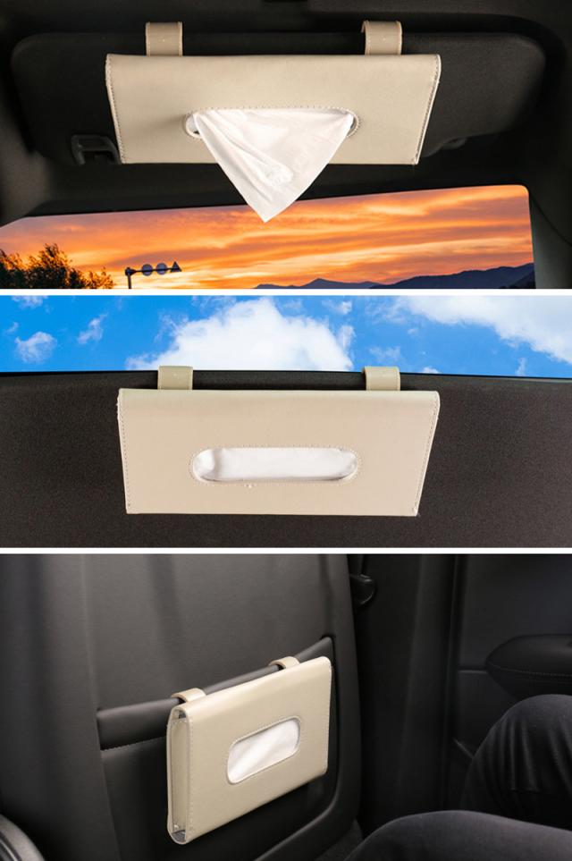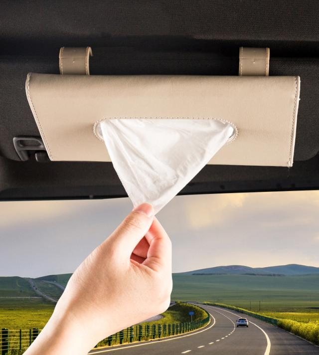 運転中にすぐにティッシュが取り出せる、便利でスタイリッシュな車用ティッシュケース。