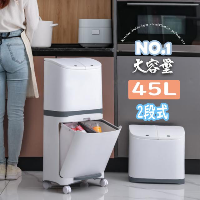 ゴミ箱 45リットル 分別 二段 ペダル ふた付き 台所 キッチン おしゃれ 臭わない キャスター付き 高さ高い 移動便利 大容量 縦型 カウンター下